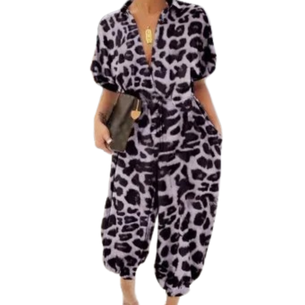 Släpp loss din vilda sida med denna snygga Leopard Print V-Neck Knot Romper- den perfekta blandningen av komfort och mode. Denna romper är designad med en smickrande V-ringning, justerbar knut framtill och korta ärmar och är ett måste i varje garderob. Det lätta, andningsbara tyget garanterar komfort hela dagen, medan det lekfulla leopardmönstret ger en djärv touch till din look. Dessutom har den praktiska sidofickor för extra bekvämlighet!