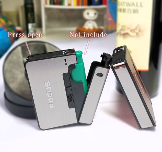 Håll dina cigaretter skyddade och alltid tillgängliga med detta praktiska cigarettfodral. Med en enkel knapptryckning får du enkelt ut en cigarett, vilket gör det till en perfekt följeslagare för alla rökare.
