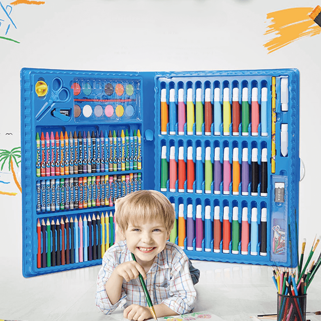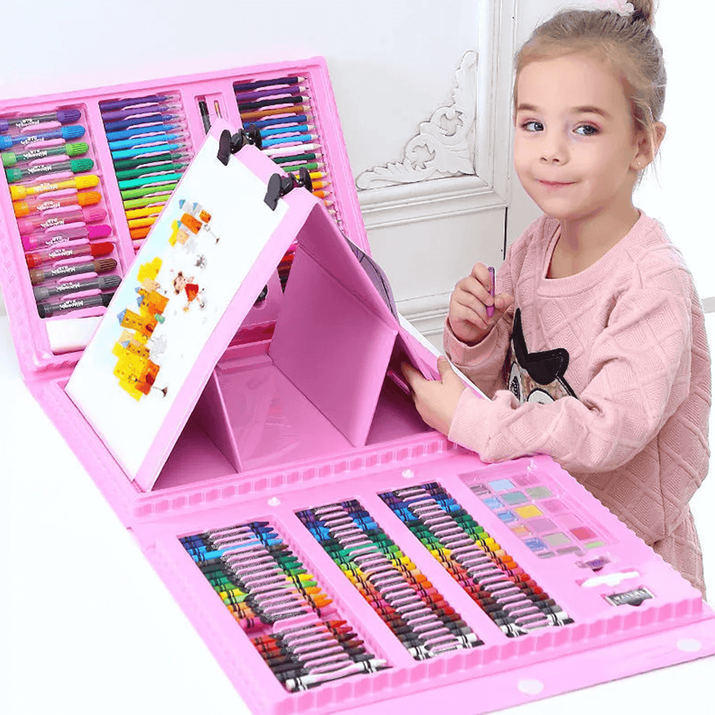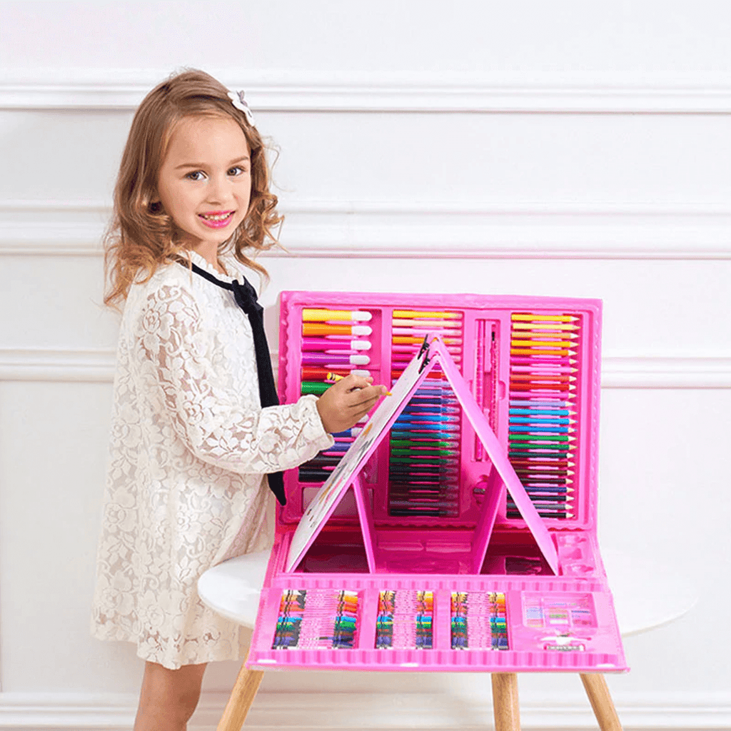 Detta kompletta konstset är perfekt för barn i alla åldrar och erbjuder en variation av färger och verktyg som gör det enkelt att skapa både teckningar och målningar. Setet är idealiskt för både hemma och i klassrummet, vilket gör det till en mångsidig lösning för konstnärlig utforskning.