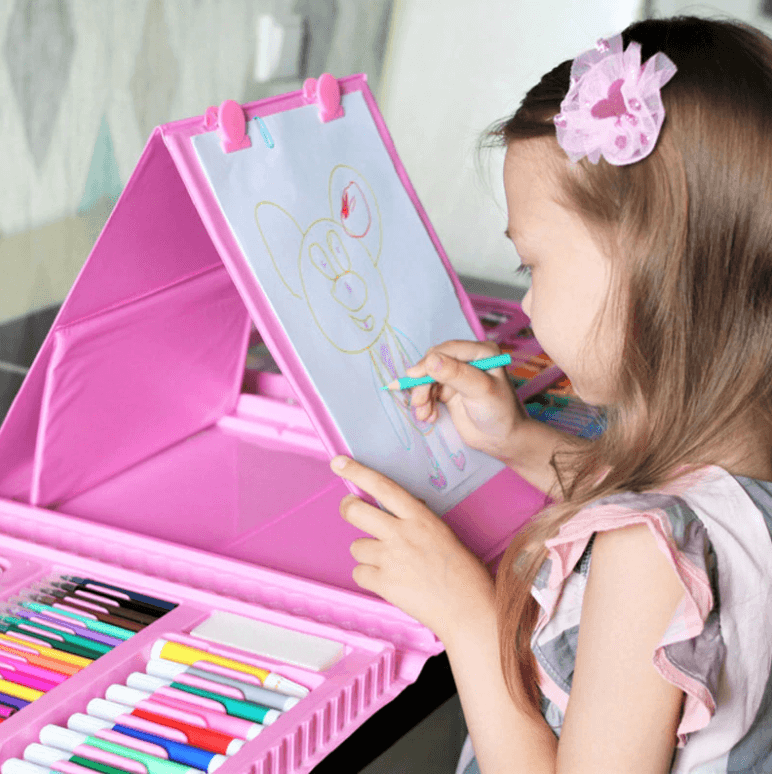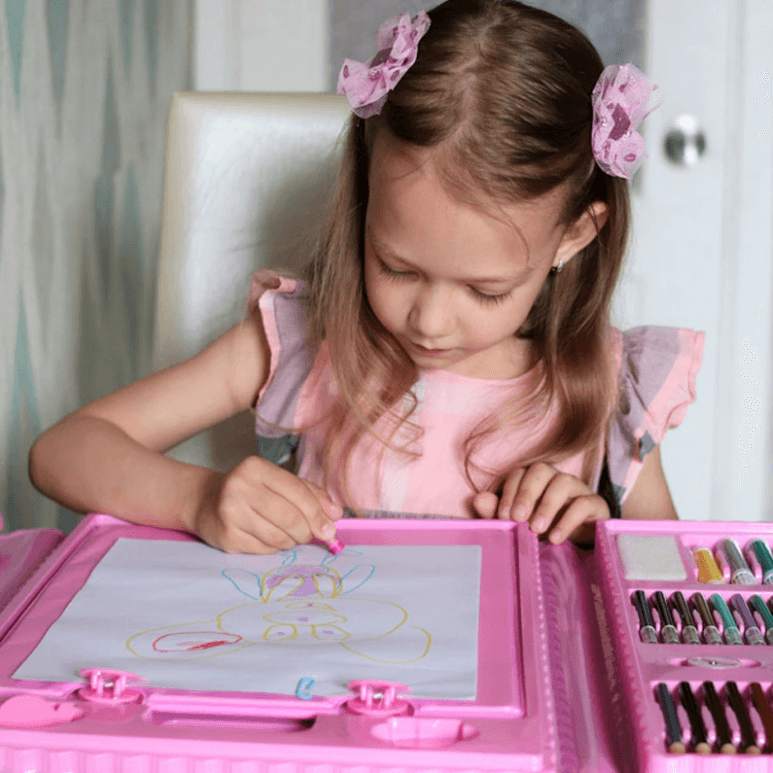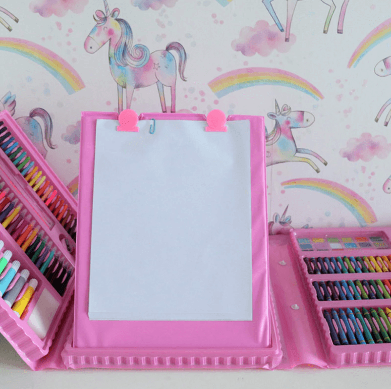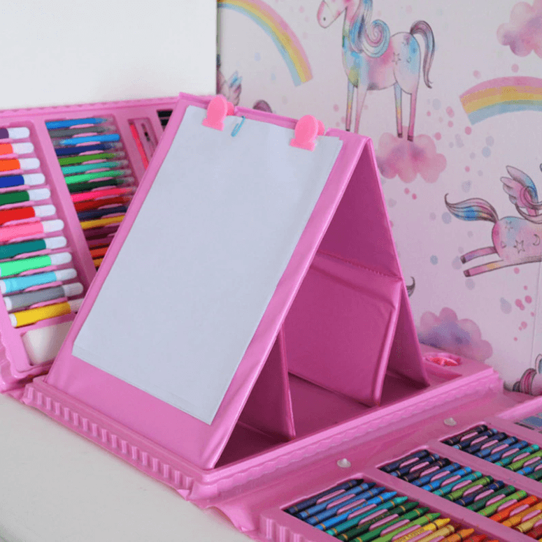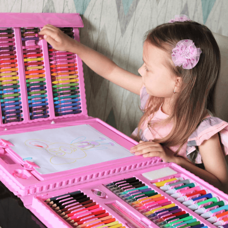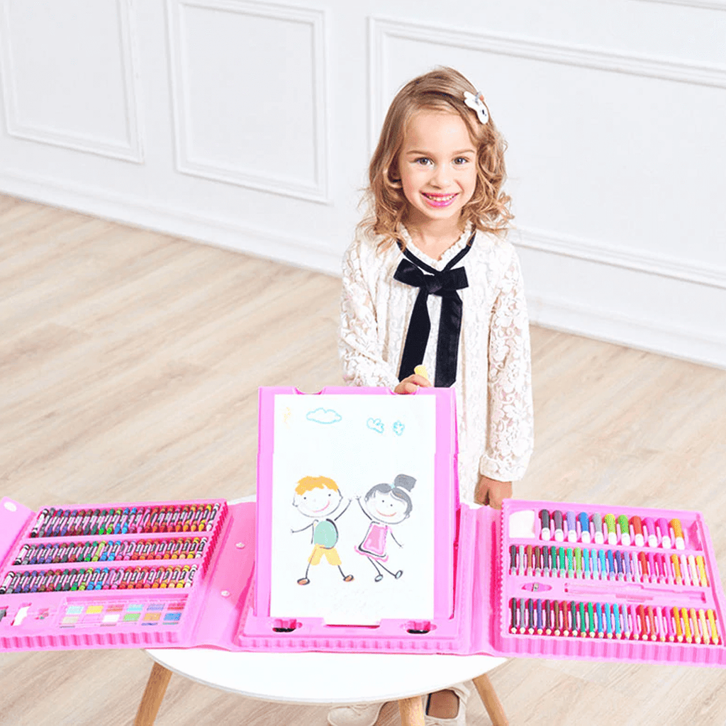 Detta kompletta konstset är perfekt för barn i alla åldrar och erbjuder en variation av färger och verktyg som gör det enkelt att skapa både teckningar och målningar. Setet är idealiskt för både hemma och i klassrummet, vilket gör det till en mångsidig lösning för konstnärlig utforskning.