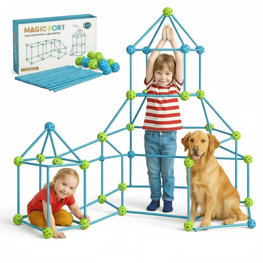 Med ett robust plug-in system kan barnen bygga grottor, tält och fantasibyggnader. Denna byggsats är idealisk för inomhusspel och passar perfekt i barnrum eller för kreativa projekt. Låt barnens fantasi flöda fritt!