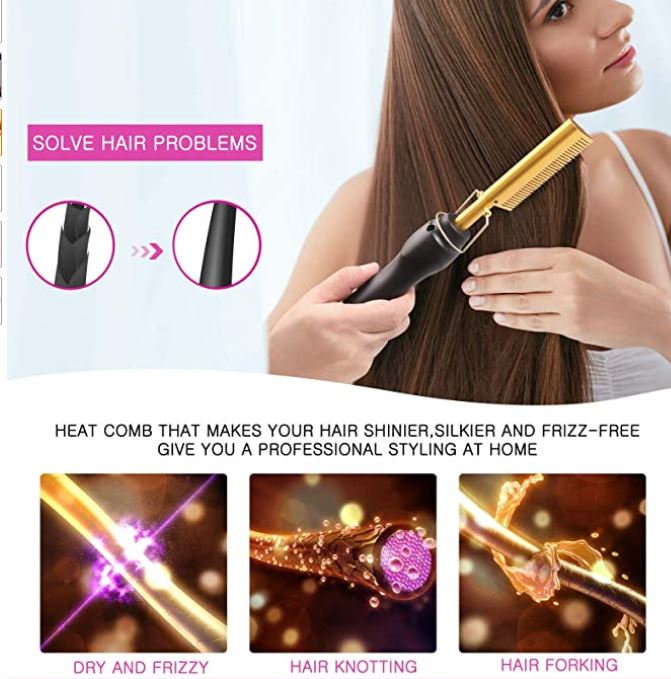 Denna innovativa kam är designad för att ge jämn värme och glans utan att skada ditt hår. Med en keramisk beläggning värms den upp snabbt och är lätt att använda på alla hårtyper.