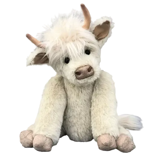 Upptäck Hamish, den perfekta följeslagaren i form av en vit Highland-ko. Denna charmiga leksak är skapad med omsorg och kärlek, vilket gör den till en underbar present för både barn och vuxna.