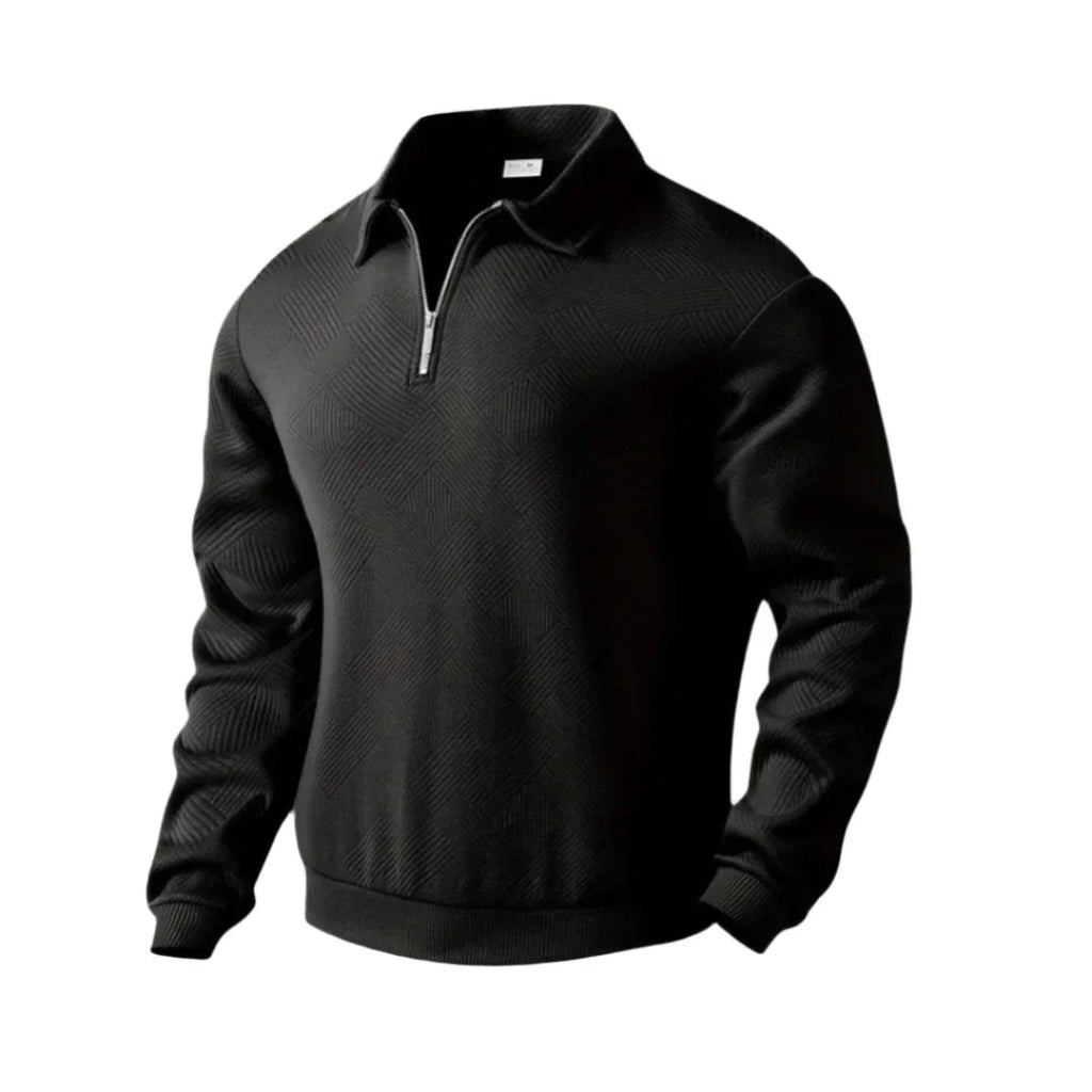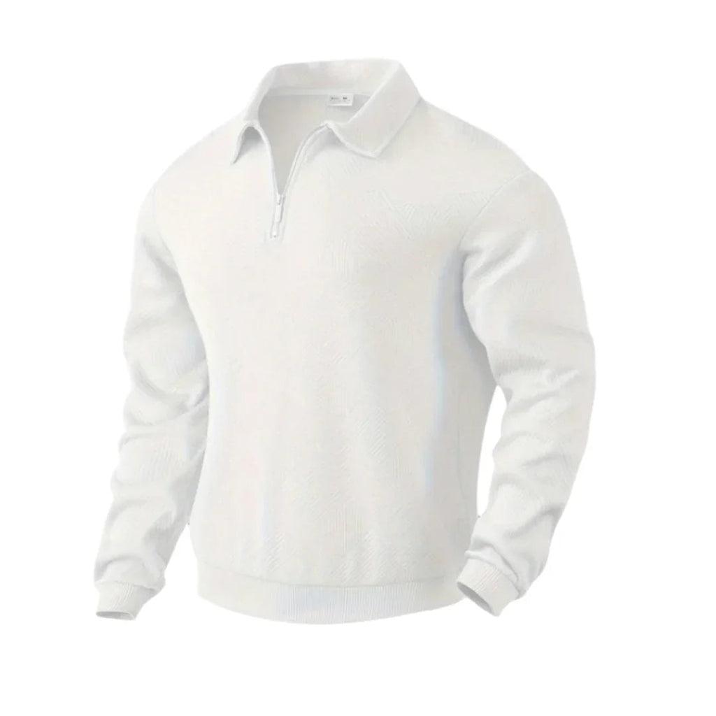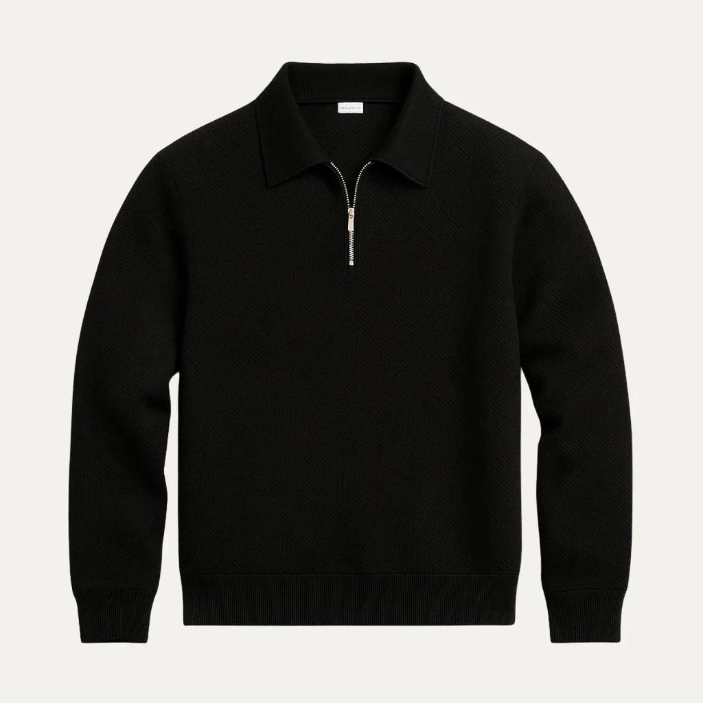 Designad för att bäras ensam eller i lager, är den här tröjan ett mångsidigt val för din smart-casual-kollektion. Den moderna dragkedjan framtill ger en uppdaterad känsla, medan den klassiska passformen säkerställer att du alltid ser bra ut, oavsett om du är på kontoret eller efter arbetstid.