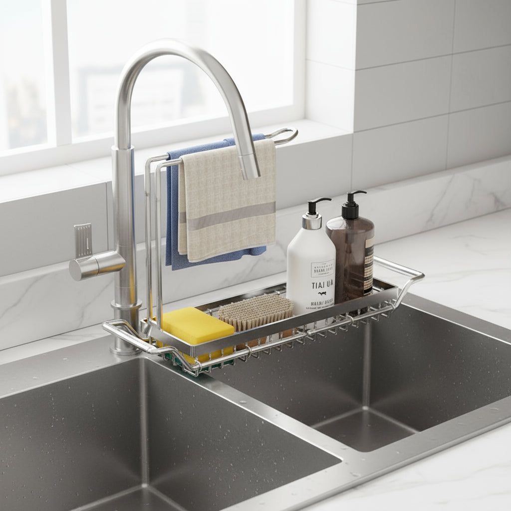 Håll ditt kök prydligt och organiserat med detta teleskopiska köksdiskställ. Den justerbara designen gör att du kan maximera din diskbänksyta och skapa en funktionell arbetsmiljö.