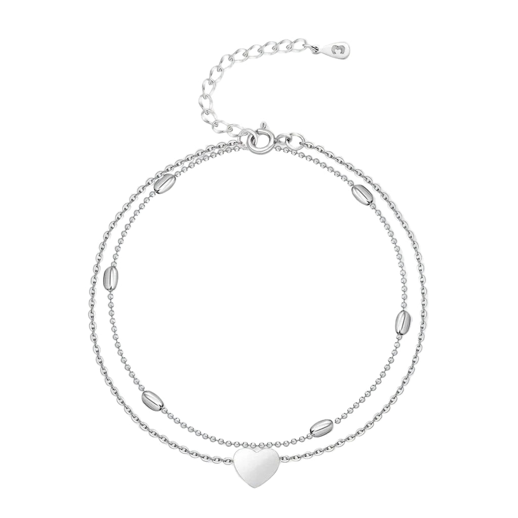 Den dubbla kedjedesignen med ovala länkar och en subtil hjärtdekoration skapar en vacker och iögonfallande look. Denna fotlänk är idealisk för både vardagsbruk och speciella tillfällen, vilket gör den till ett mångsidigt tillägg i din smyckeskollektion.