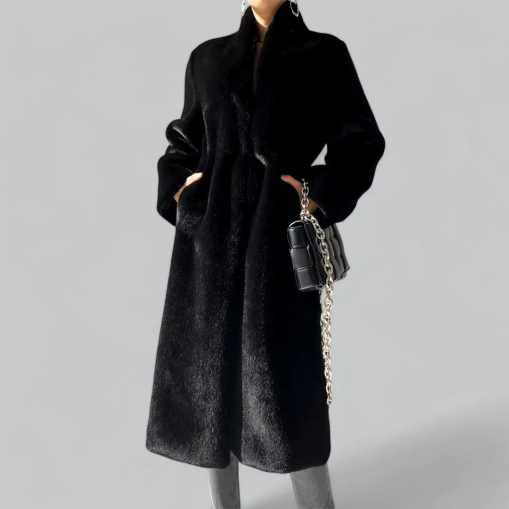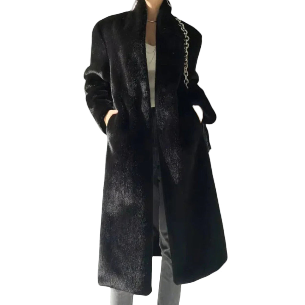 Uppgradera din vintergarderob med denna stiliga kappa i fuskpäls. Den är perfekt för den moderna kvinnan som vill kombinera stil med komfort.