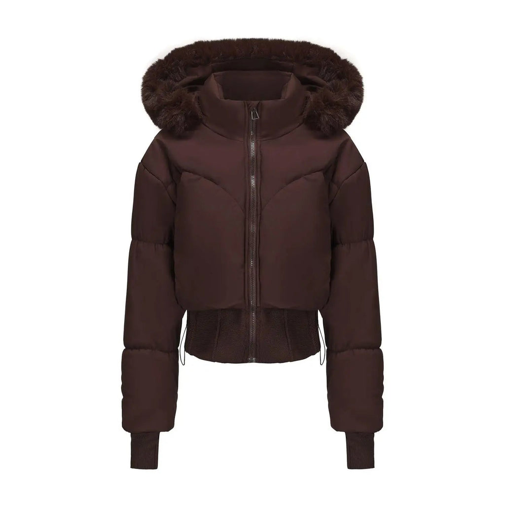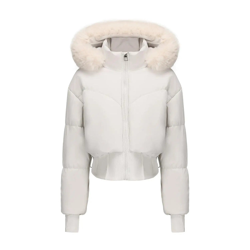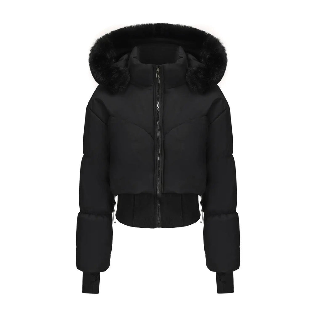 Med sitt korta snitt och pälskrage erbjuder jackan både stil och funktionalitet. Den quiltade designen ger en behaglig känsla och skyddar mot kylan.