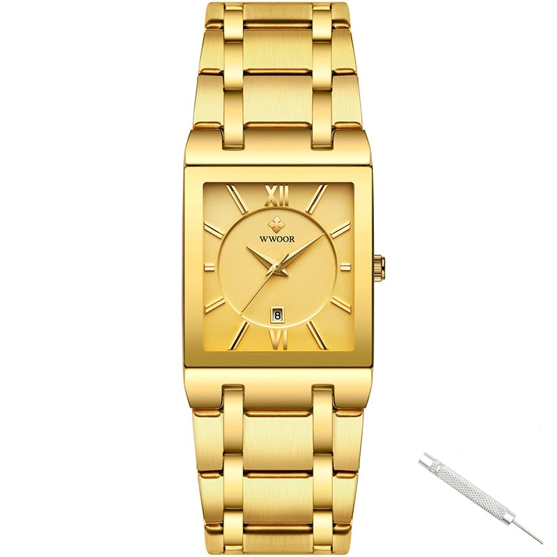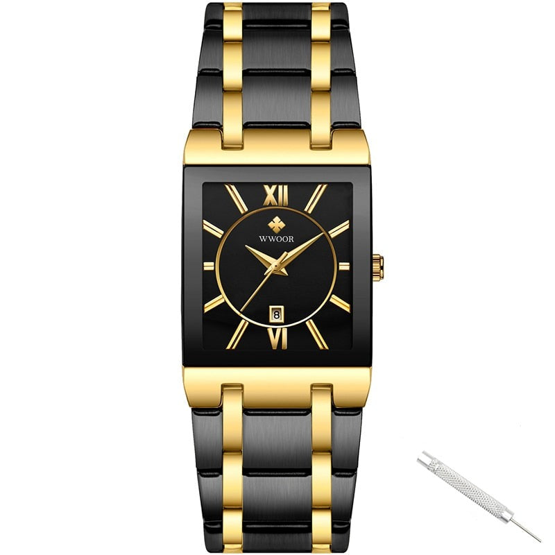 Är du redo att omdefiniera din handledssmyckning med tidlös elegans? Letar du inte längre än vår Lyxiga Fyrkantiga Klocka – ett mästerverk som talar till din känsliga smak och sofistikering. Tillverkad med de finaste materialen, harmoniserar denna tidsenhet lyx med funktionalitet och lyfter din handledssmyckning till en helt ny dimension. Med sin distinkta design och precision i rörelsen är denna klocka mer än bara en tidhållare; den är en uttryck för din unika personlighet och en påminnelse om livets exceptionella ögonblick.