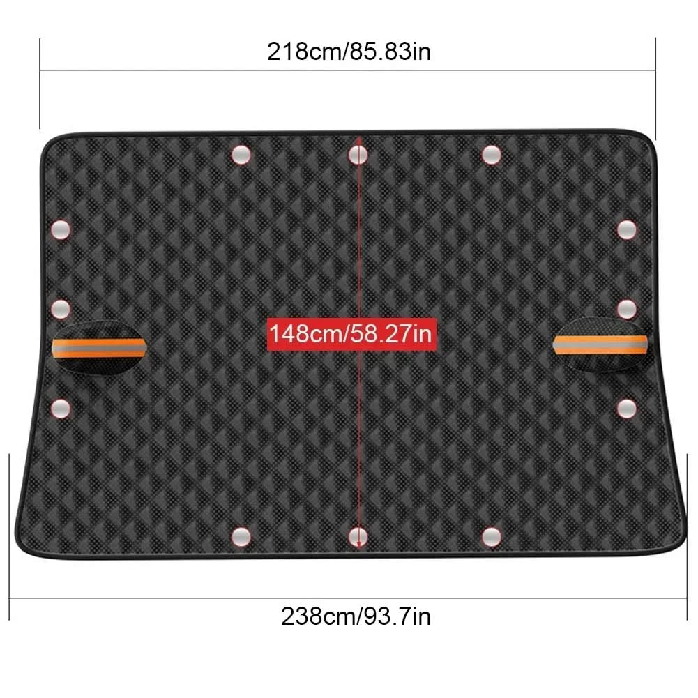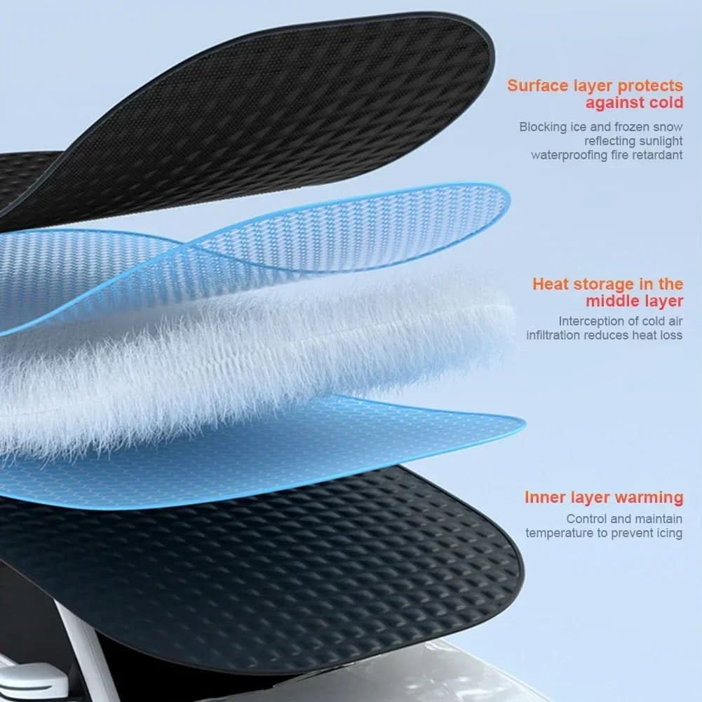 Detta bilskydd är utrustat med en värmereflekterande yta som håller interiören sval under sommaren och förhindrar frost på vintern. Med magnetiska fästen sitter det säkert på plats även i blåsiga förhållanden.