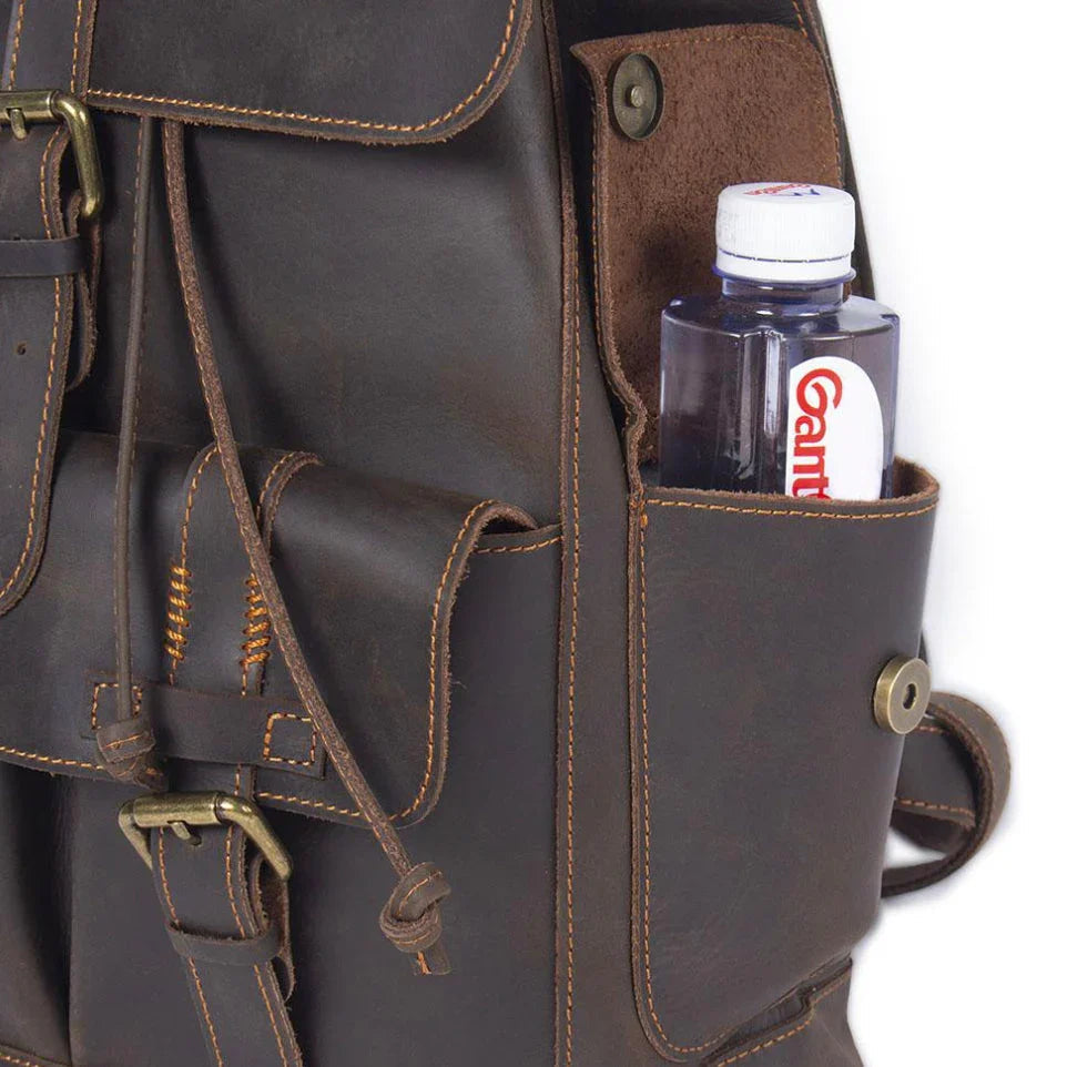 Upplev en perfekt kombination av tidlös stil och modern funktionalitet med denna läderryggsäck. Den är designad för den moderna upptäckaren som värdesätter både estetik och praktiska egenskaper.