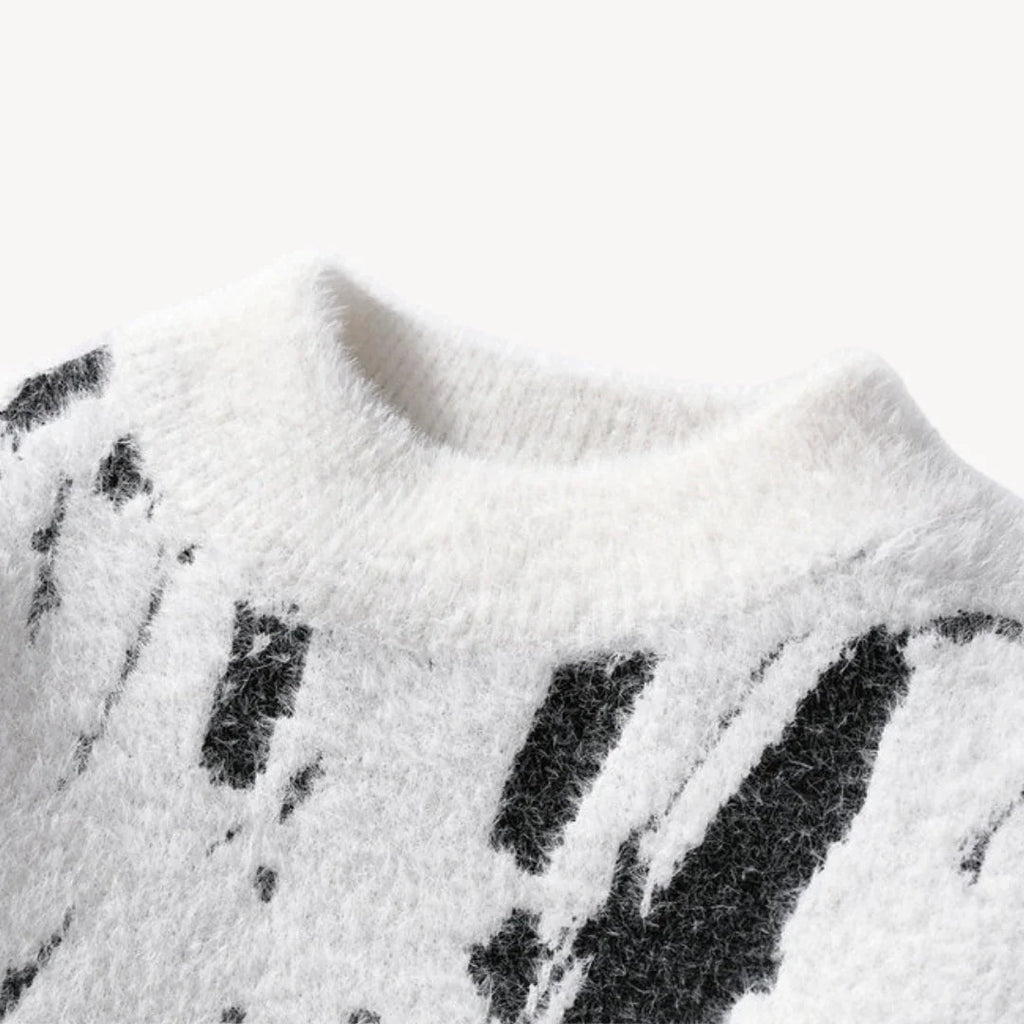Lyft upp din avslappnade garderob med denna fuzzy stickade tröja för män. Med ett unikt komönster kombinerar den komfort och stil utan ansträngning.