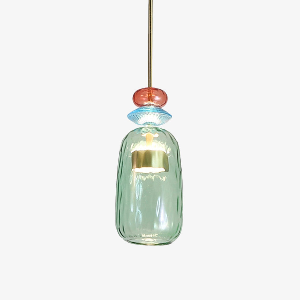 Sofia-lampan har en cylindrisk form och färgade glas som ger ett mjukt och stämningsfullt ljus. Den är perfekt för kök, vardagsrum eller matplats och erbjuder en fantastisk kombination av design och hållbarhet.