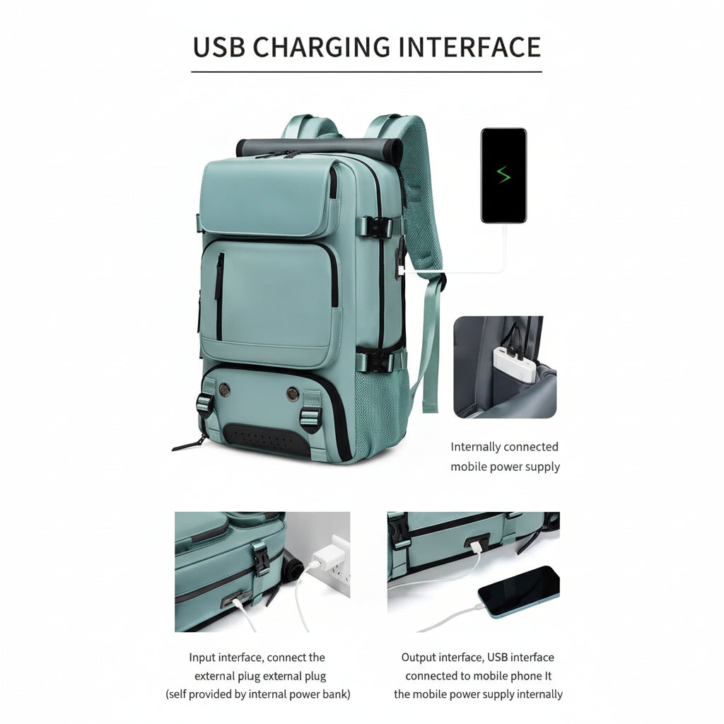Reseryggsäck med USB-port och separat skofack