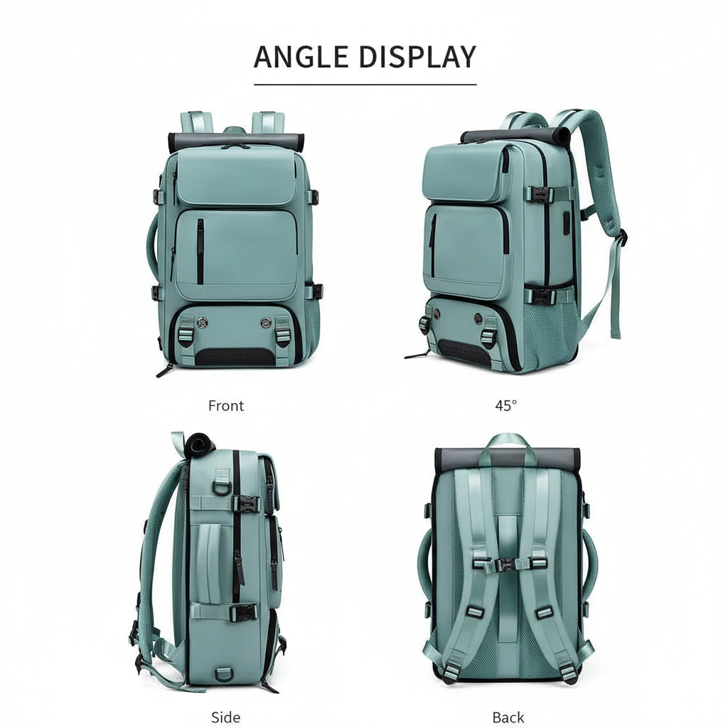 - Design: Reseryggsäck med stor kapacitet och separat skofack