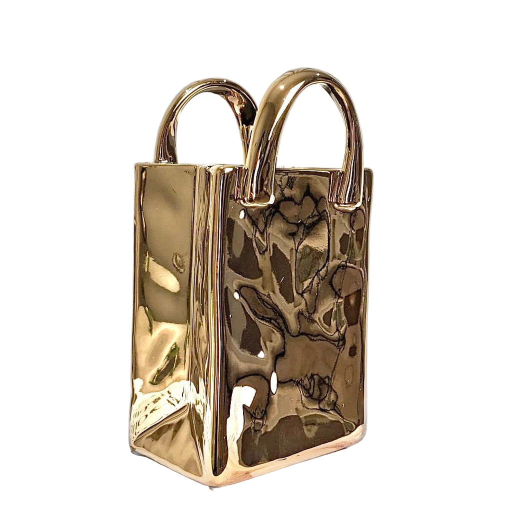 Förvandla ditt hem till en stilfull oas med vår fantastiska vas som liknar en exklusiv handväska. Denna slående guldvas utstrålar finess och lekfullhet, vilket gör den till ett perfekt komplement till alla inredningar.