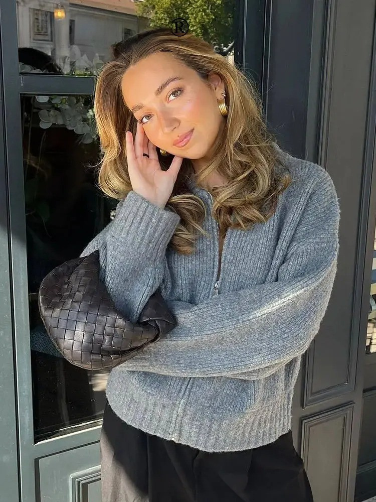 Svep in dig i komfort och klassisk charm med denna Vintage rundhalsad tröja för kvinnor. Denna tröja är designad för vardagsbruk och har en ren, minimalistisk look med en mångsidig dragkedja för extra bekvämlighet.